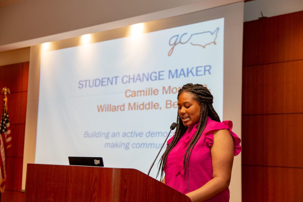 Through this process, I have learned that changing a community for the better takes A LOT of work! In my head, Generation Citizen was all about the action – interviewing experts, calling legislators, and organizing events. It quickly became clear that most of the work was going into research – we had to find out how many people in our community were even facing this issue, we had to explore the root causes of the issue, and we had to develop relationships with targets who would be able to enact real change. This was an eye-opening experience for me. Generation Citizen also provided a great opportunity for us to collaborate with people our own age, working towards a goal that we all agreed on and found meaningful. While we may be young, this process has taught me that our voices can be heard if we go about it in the right way. Thank you for presenting me with this award today, and I hope that all of you had experiences similar to my own.