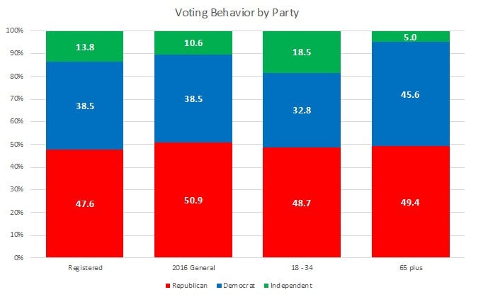Young voter turnout in Oklahoma is particularly notable because it debunks the myth that young votes translate entirely into Democratic votes. Historically, young voters reflect their parents, and it certainly clear than young Oklahomans continue to reflect the overall breakdown of registered voters in the state. While Democrats make up a larger portion of young voter nationally, the same simply isn’t true in Oklahoma.